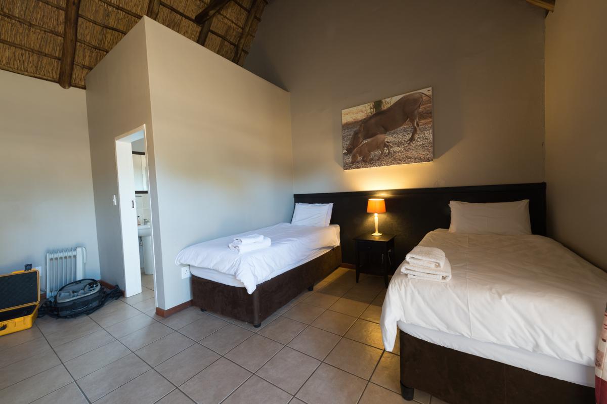 Although a bar fridge and refreshment station are included in the Chalet, they do not have a full kitchen. The large open boma and swimming pool are in close proximity and the equipped boma kitchen and wash up area can be used where required.