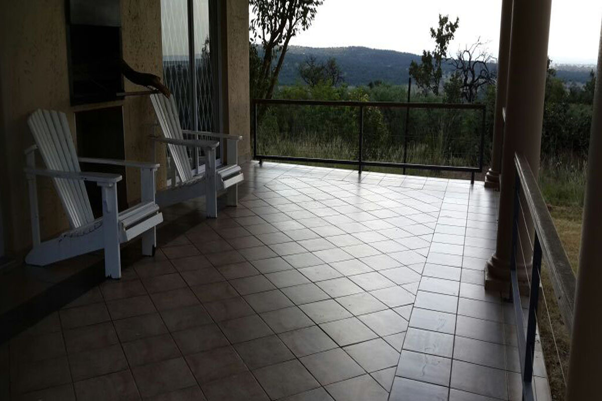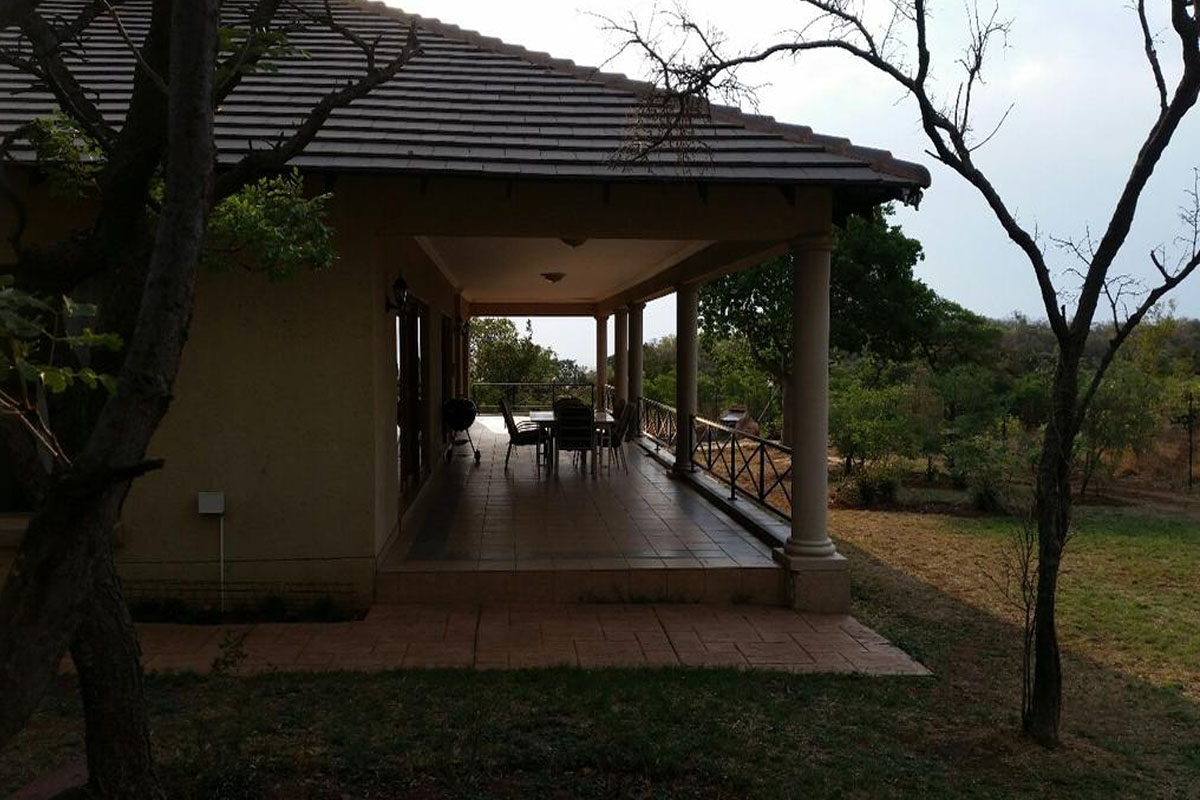 2. Three Bedroom, 2 en-suite bathroom with seperate toilet. Unit sleeps 8 people(2 bed open plan) or more on request. The unit also has an unequalled view over the Dinokeng and a drinking water pan with game watching including zebra, giraffe etc, further a large porch, braai, nature pool and social area. Ideal for bird watching, walks and privacy.